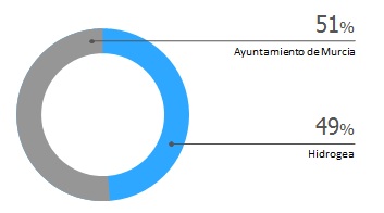 Aguas de Murcia es una empresa mixta de servicios, participada en un 51% por el Ayuntamiento de Murcia, titular de los servicios, y en un 49% por Hidrogea.
